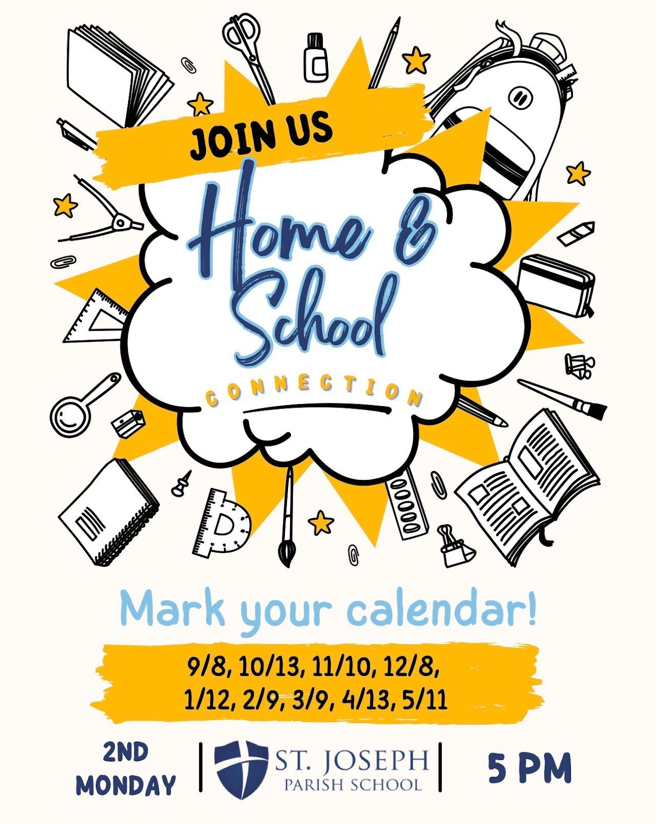 The Home & School Connection is an organization that belongs to and is made up of all the parents/guardians who have children in St. Joseph Parish School. The association is a service organization whose purpose is to provide ways for parents/guardians to become involved in their child’s school and to support and enhance the work of the school, its staff, and students. Home and School provides parents/guardians with an opportunity to meet and work with other parents/guardians.